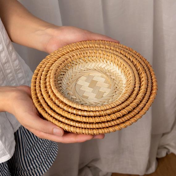 Handmade Round Bamboo Basket Tray and Plate for Creative Home Decoration
