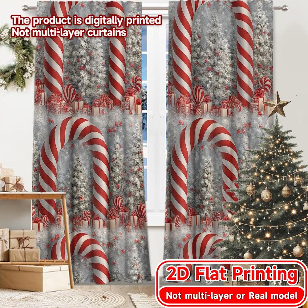 Set Of 2 Flat Printing Candy Cane Wonderland Chic Curtain Fabric Versatile Polyester Curtains Gifts Ldeal Living Room Perfect For Sitting