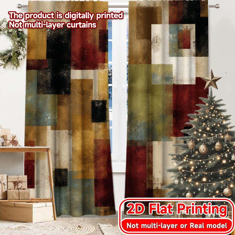 Set Of 2 Flat Printing Curtains Without Rod Abstract Color Blocks Design Holiday April Fools Is Day Printed Versatile Curtain Polyester