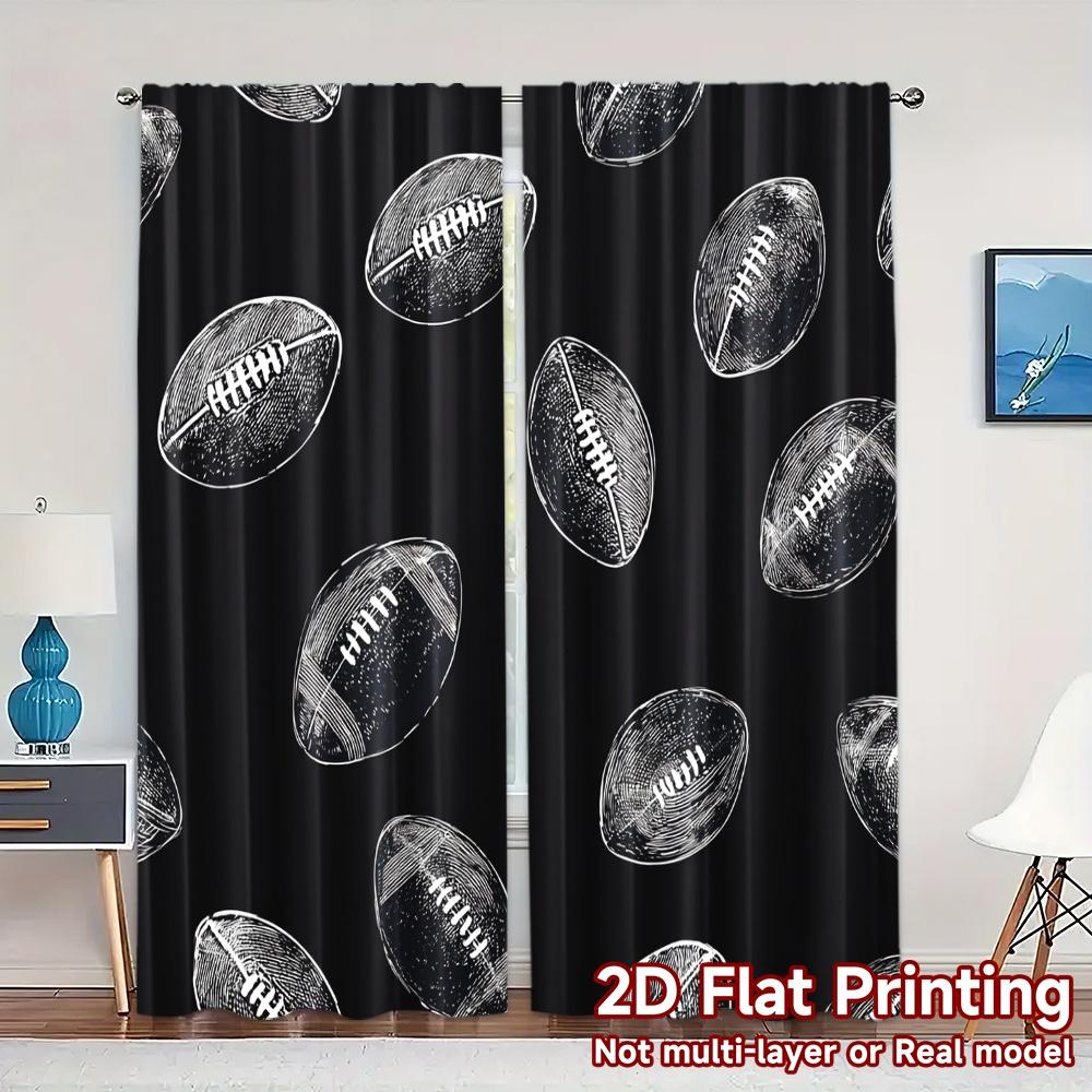Set aus 2 modernen, flach bedruckten Jit-Vorhängen ohne Stange Fußball-Rausch Beliebter Polyester-Vorhang mit Thermofunktion