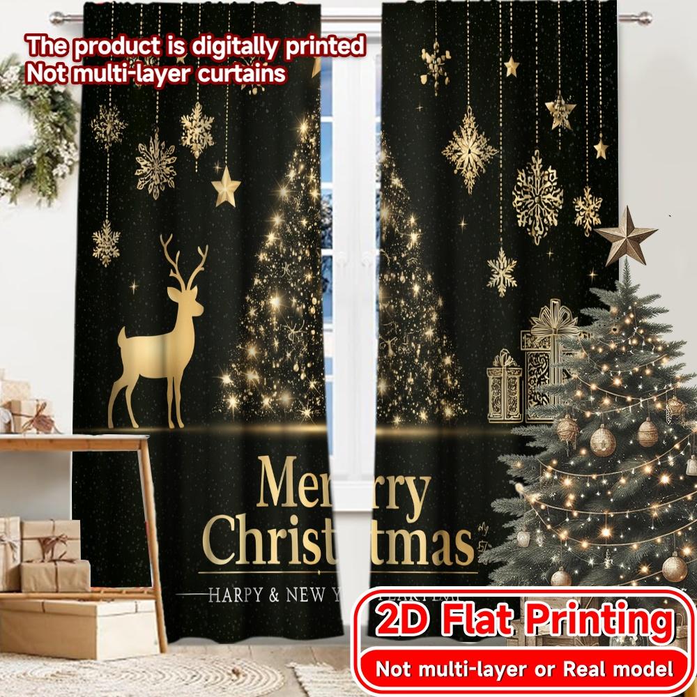 Set aus 2 flachen Druckvorhängen ohne Stange Merry Christmas Dekorationsdesign Valentinstag Feiertag Vielseitig Hergestellt aus Polyester