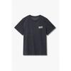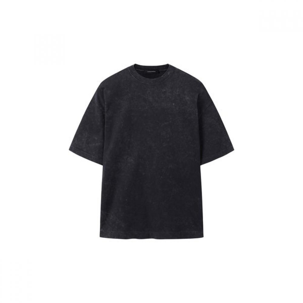 This product is a gray dying t-shirt with a vintage mood, showcasing a unique appearance through the use of garment sulfur dyeing technique. It also features an oversized silhouette, providing comfortable wear that can be utilized in various outfits.