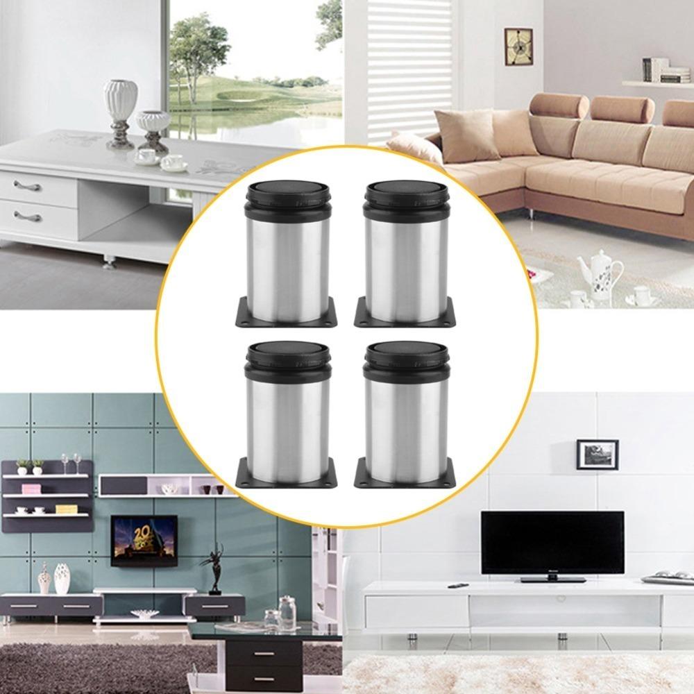4er-Pack Edelstahlmöbelfüße Verstellbare Runde Schrankfüße mit 16 Schrauben Metall-Nivellierfüße
