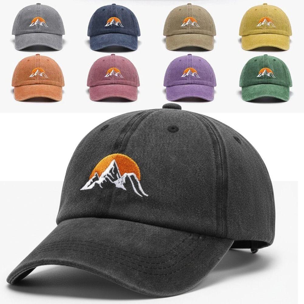 Sunset Pattern Embroidery Baseball Cap Washed Cotton Baseball Hats Retro Peaked Cap For Man Women