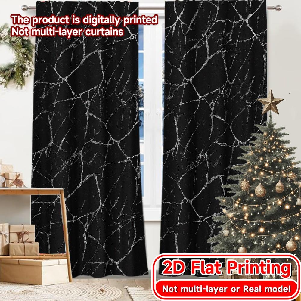 Set aus 2 flachen Druckvorhängen ohne Stange Marmoradern Beliebte Vorhänge Festival Langlebiges Polyestergewebe Vorhang