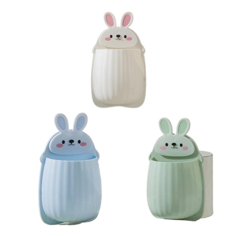 Punch-free Wall-mounted Mobile Bathroom Makeup Organizer Phone Remote Control Storage Box Cute Rabbit Wall Hanging Storage Rack