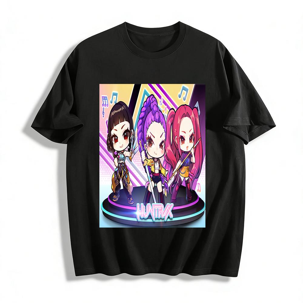 HUNTERX Q Version Girl Group Print Casual Top Anime Game Style Loose Fit For Men And Women Pure cotton T-shirt