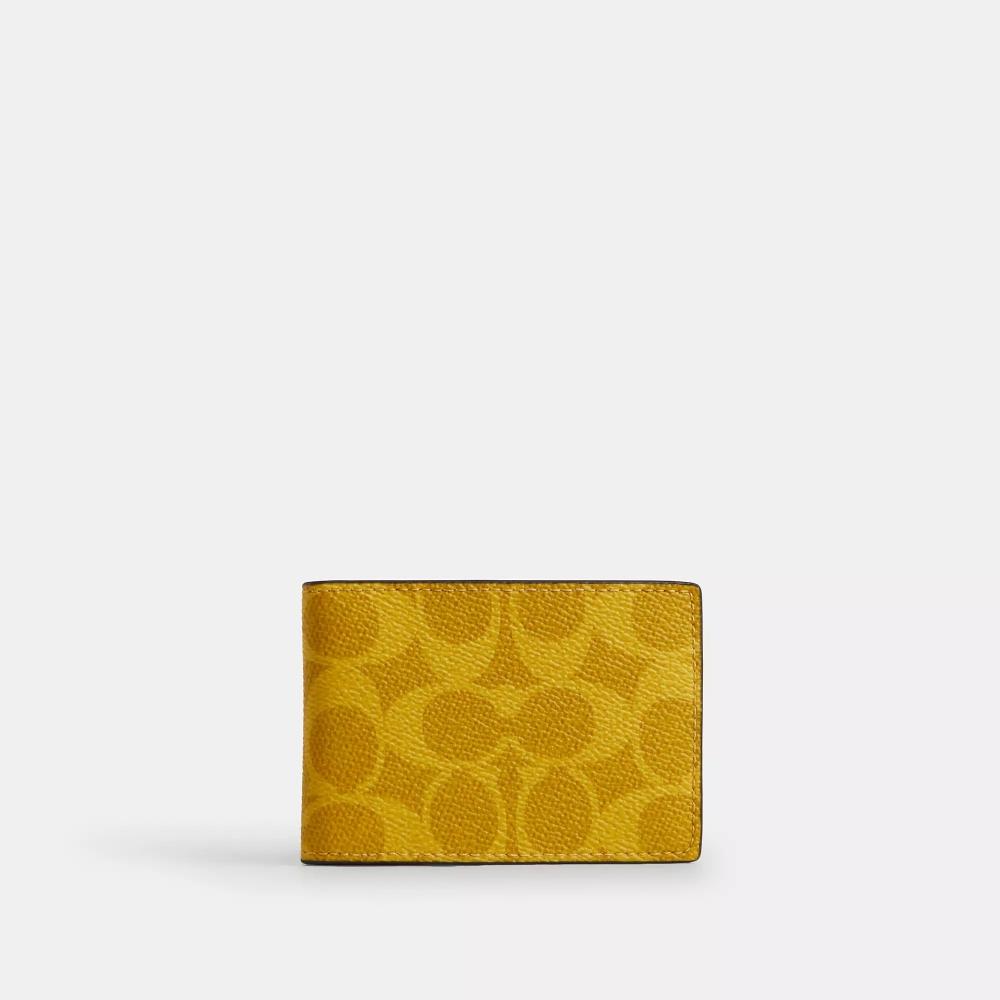 Coach Compact Billfold Wallet In Signature Canvas Canary