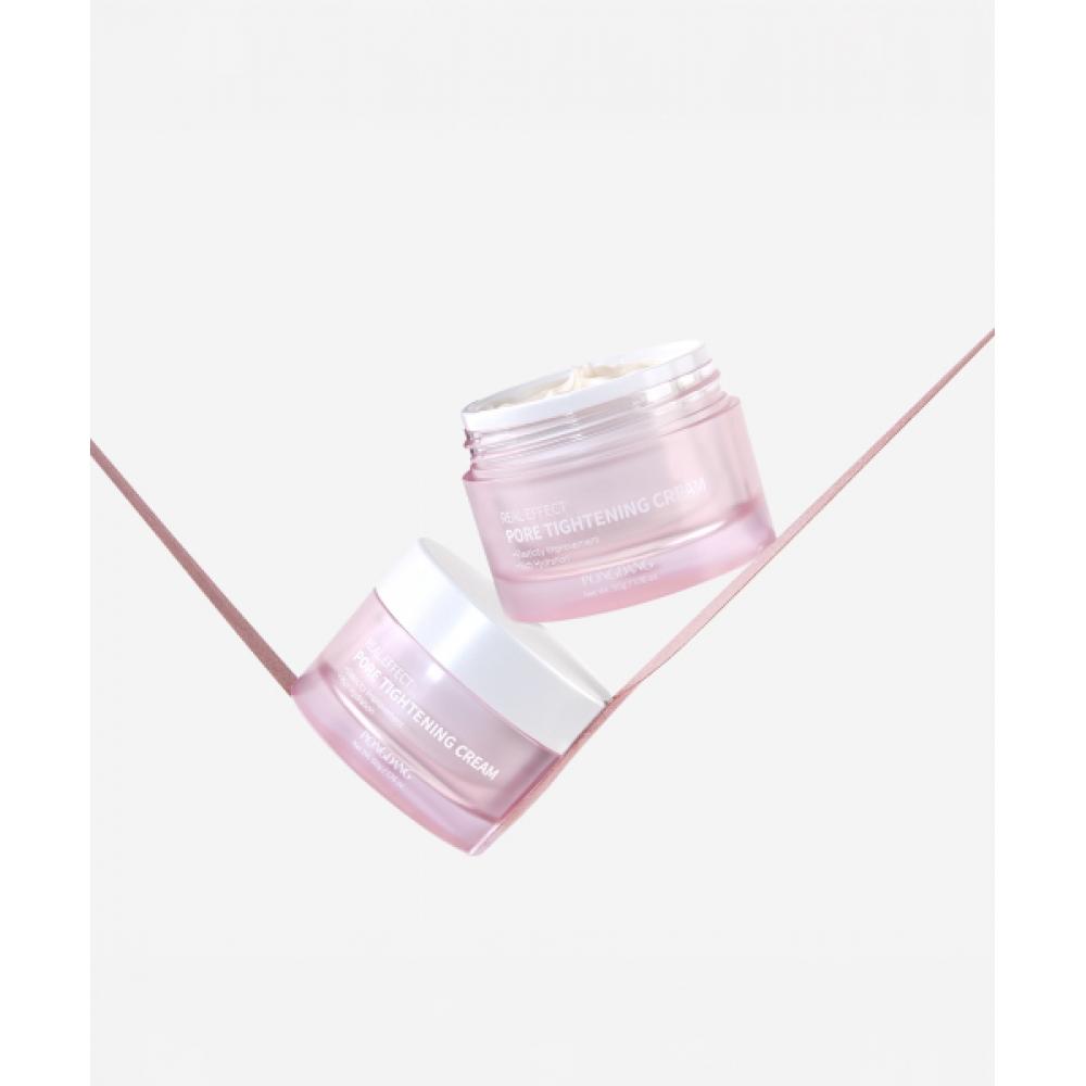 PONGDANG Real Effect Porenverfeinernde Creme 50ml ist eine Creme, die speziell für die Porenpflege entwickelt wurde und klinisch erwiesen ist, die Poren sofort nach der Anwendung um 23 % zu reduzieren.. Dieses Produkt enthält den patentierten Inhaltsstoff ANTI-SEBUM P zur Regulierung überschüssigen Talgs, während Kollagenpeptide die Hautelastizität verbessern und Niacinamid die Verfärbungen von Poren reduziert.. Dieses Produkt ist vom Ministerium für Lebens- und Arzneimittelsicherheit auf seine Funktionalität zertifiziert, eignet sich für alle Hauttypen und zeichnet sich durch Feuchtigkeitsversorgung, Nährung, Verbesserung der Elastizität, Beruhigung der Haut und Peeling aus.. Seine Textur ist weich wie Joghurt, reich an Feuchtigkeit und lässt sich ausgezeichnet verteilen.. Es sorgt für ein nicht klebriges, feuchtes und glänzendes Finish und gleicht die Hauttextur aus.. Zusätzlich erhöht die Anwendung vor dem Make-up die Haltbarkeit des Make-ups.