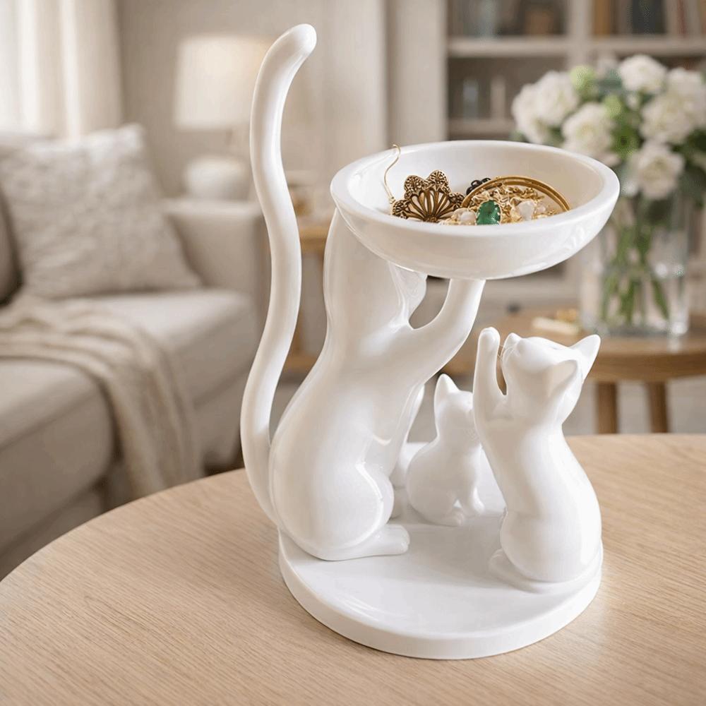 Decorative Cat Jewelry Tray Cartoon Desktop Ring Holder Large Capacity Key Tray Bedroom Decor