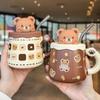 Ceramic Cute Bear Water Cup Straw Cup With Lid Ceramic Coffee Mug Beer Christmas Cups Funny Mugs Personalized Gift Drinkware Bar