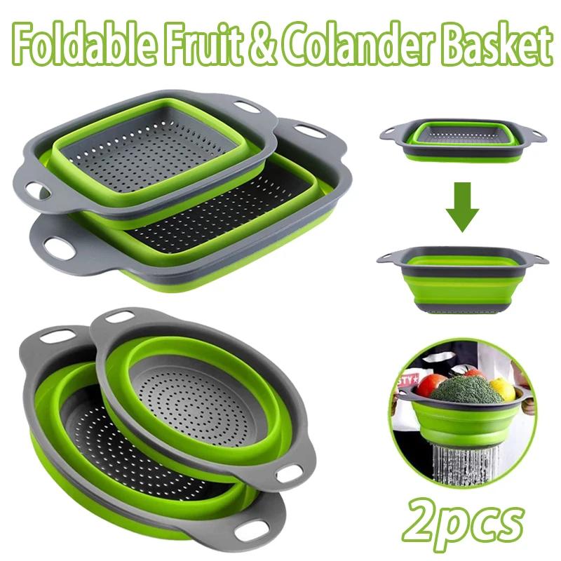 Silicone Folding Drainer Basket Portable Kitchen Strainer Fruit Vegetable Washing Folding Drainer Kitchenware Drain Device GLW01