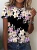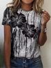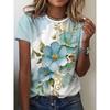 Fashion Women's Crew Neck T-Shirt 3D Flower Color Printing Short Sleeve