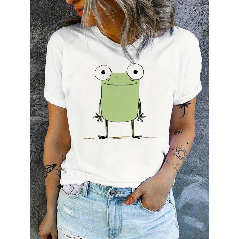 Lässiges und stilvolles abstraktes Cartoon-Frosch-Grafik-atmungsaktives bedrucktes Rundhals-Kurzarm-T-Shirt, ein neues Sommer-Damen-Kurzarm-Oberteil für die Freizeit