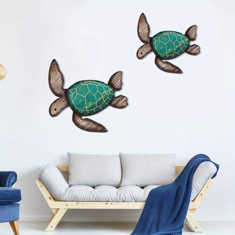 2 Stück/Set Holzschild Schildkröte zum Aufhängen an der Wand, Dekorationen im Farmhouse-Strand-Thema, Vintage-Küstenschildkröten-Malerei für die Wand