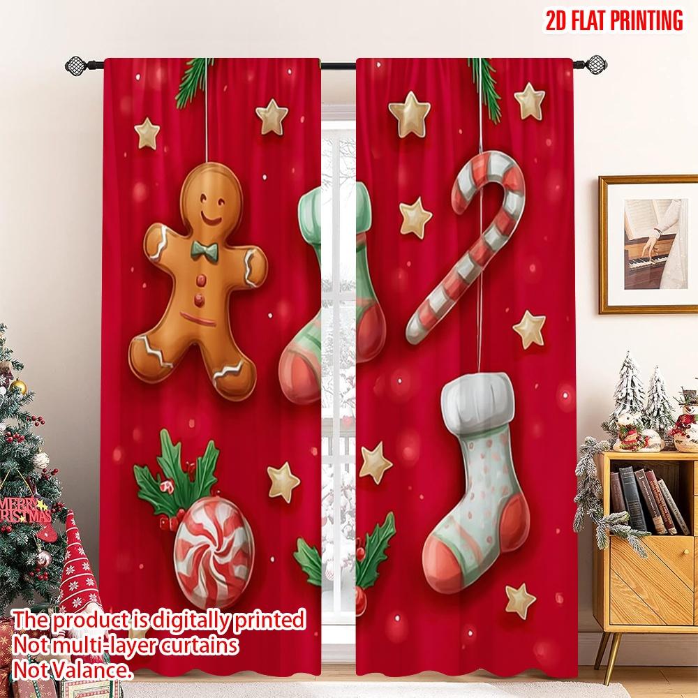 Set aus 2 flach bedruckten, hochwertigen Weihnachtsvorhängen mit stilvollen Elementen, einschließlich Lebkuchen, digital bedrucktes Polyester