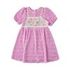 The Smocking Banding Puff Dress by Second Skin is designed for children aged 4 to 6, providing comfortable wear. This dress features a seamless smocking structure and woven puff sleeve details that add elegance. The cool, crinkly feeling of the skirt boasts attractive color variations, allowing for matching looks with mom.