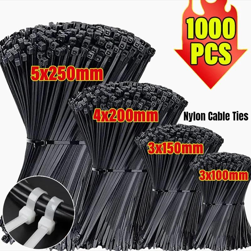 1000pcs Nylon Cable Ties Self-locking Cord Ties Straps Adjustable Cables Fastening Plastic Clamp Heat Resistant Wire Zip Tie