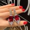Elegante Rote Edelstein-Hängeohrringe für Damen Klassisches Blumen-Design Leichter Luxus Brautschmuck
