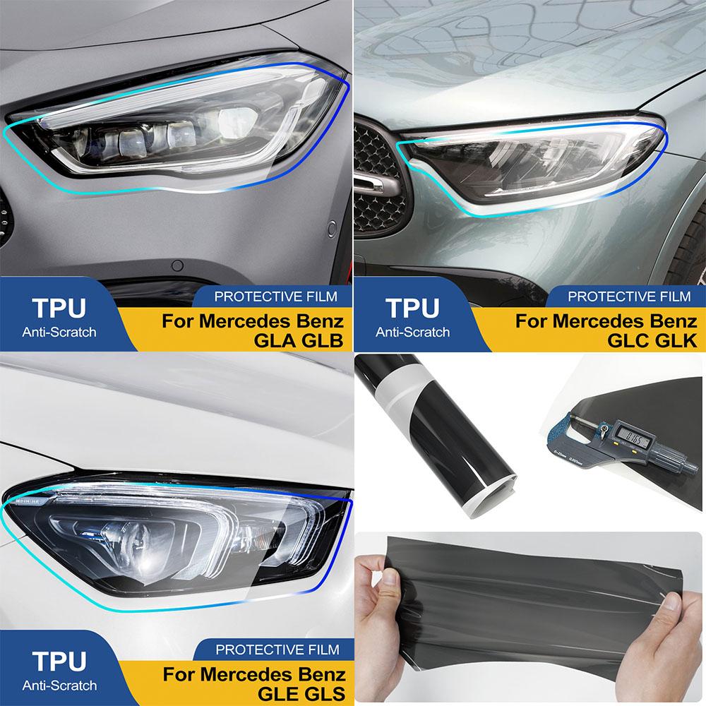 For Mercedes Benz GLA/GLB/GLC/GLK/GLE/GLS Pre-Cut TPU Headlight PPF Smoke Black High Gloss Anti-Scratch Protective Vinyl Wrap