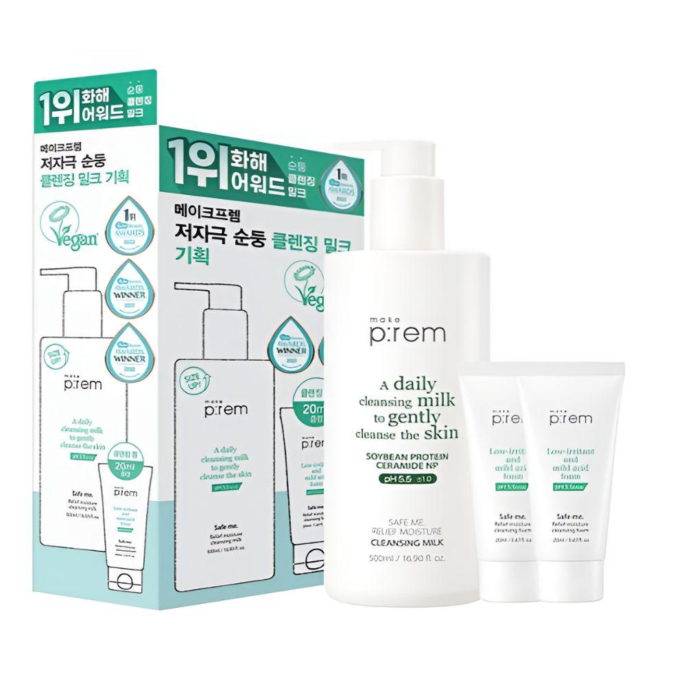 MAKE P:REM Safe Me Relief Moisture Cleansing Milk Set 500ml + Foam 20ml x2 Gentle Hydrating Cleanser