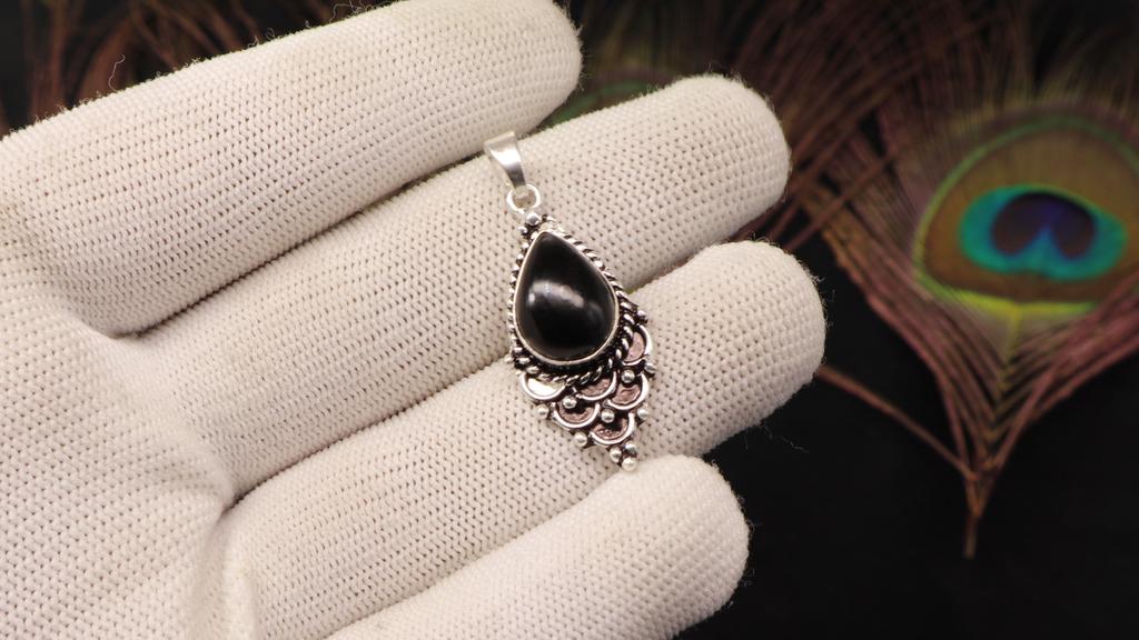 Schwarzer Turmal Edelstein 925 Sterling Silber Party-Anhänger 1,5" Für Mädchen PP-70-33