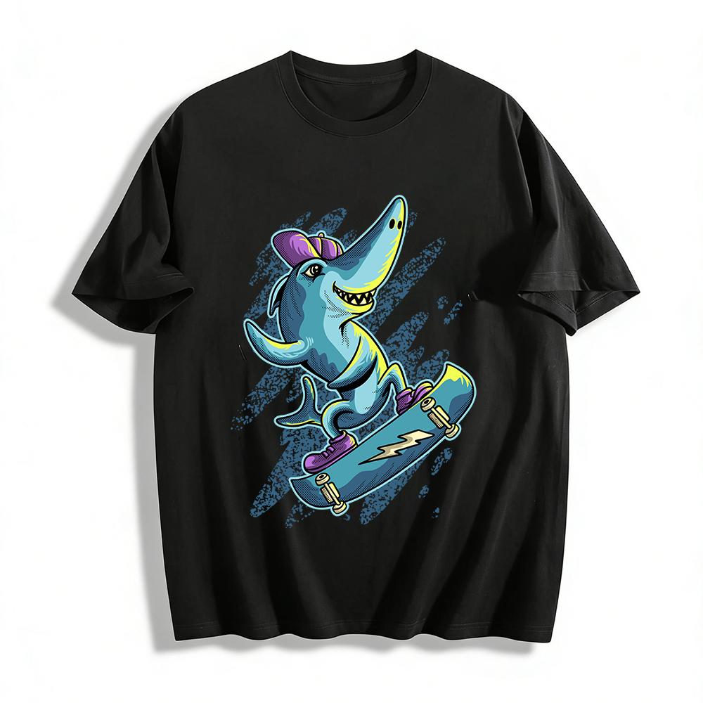 Street Style Skateboarding Shark Print Casual Short Sleeve Top Pure cotton T-shirt