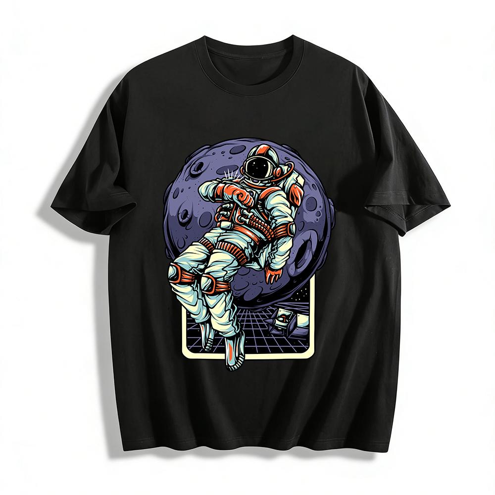 Astronaut ruht auf dem Mond Grafik Lässiges T-Shirt Reines Baumwoll-T-Shirt