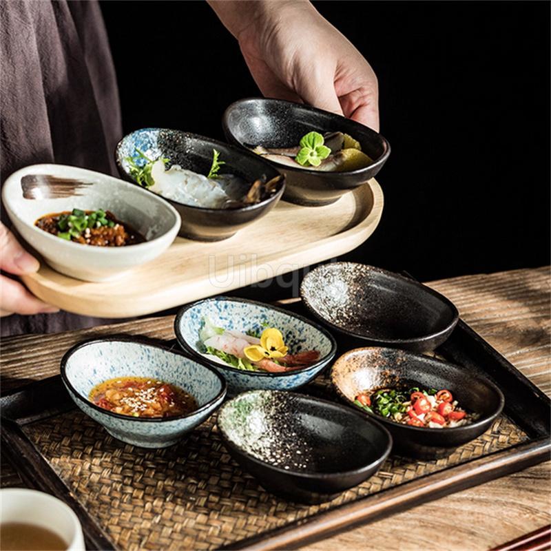 Ceramic Dim Sum Dish 100ML Japanese Retro Style Snack Bowl Household Creative Oval Hot Pot Dipping Sauce Plate Kitchen Utensils
