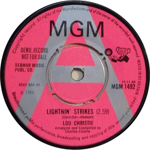 7-Zoll-Schallplatte LOU CHRISTIE Lightnin Strikes MGM1492PROMO MGM Records 1969 UK Reggae Ska Dub Gebraucht