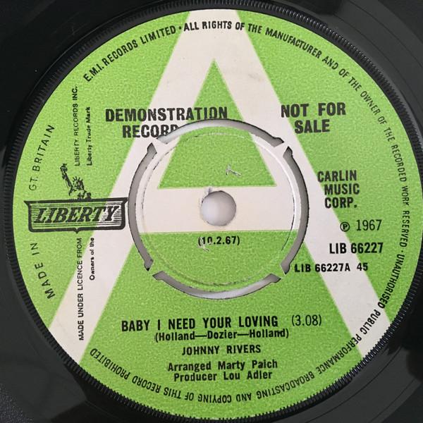 7-Zoll-Schallplatte JOHNNY RIVERS Baby I Need Your Lovin LIB66227PROMO Liberty 1967 UK Rock Gebraucht