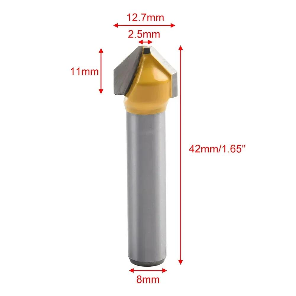 V-Nutenfräser 90 Grad 8mm Schaft Mit 1/2 Flachem Kopf Hartmetall Holzgravur Fräser Holzbearbeitung Fräser