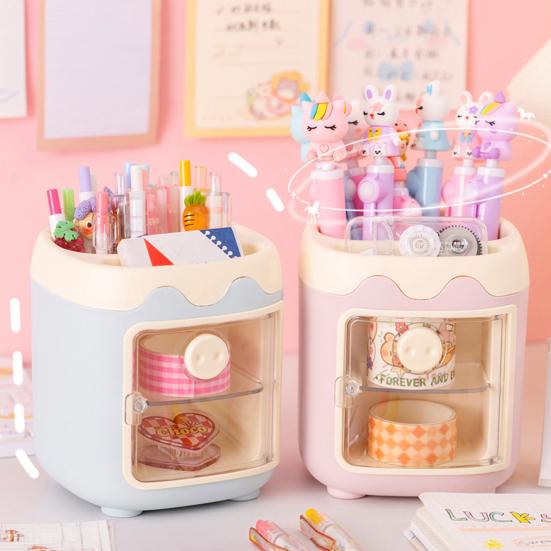 Fun & Stylish Look: With wavy edges and a pig nose transparent door in trendy macaron colors, this pen holder adds a playful touch that appeals to students and office workers alike.