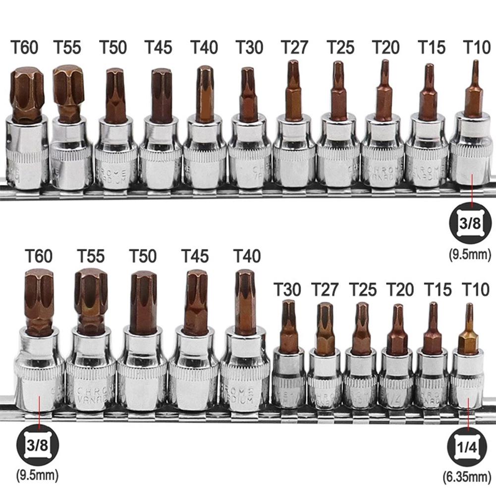 11-teiliges Steckschlüssel-Set Torx-Schraubendrehereinsätze 3/8 1/4 Zoll Schraubenschlüssel-Steckadapter T10 T15 T20 T25 T27 T30 T40 T45 T50 T55 T60