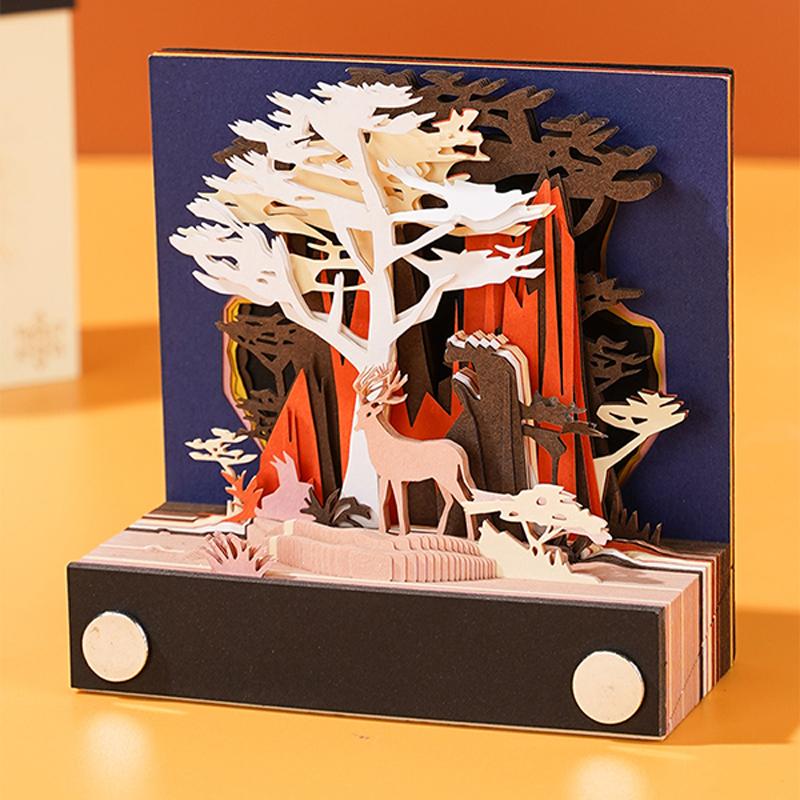 Desk Calendar,2024 Calendar Memo Pad,Creative Desk Calendar Diy Notes Notepad,3D Art Calendar Paper Carving Gift House Sculpture