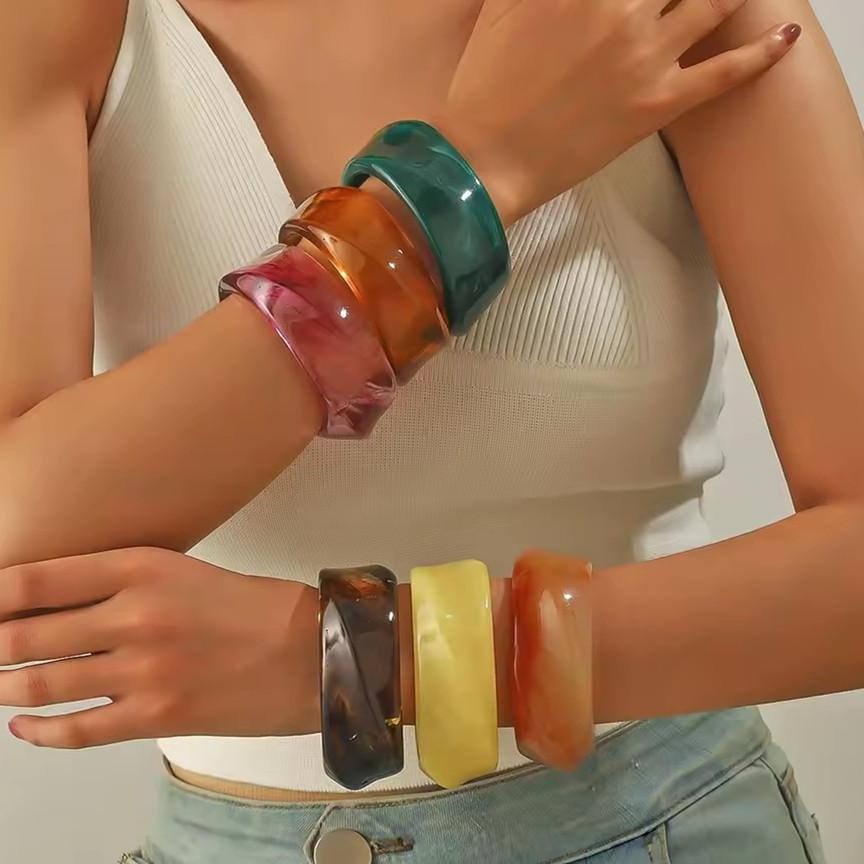 Trendy Thick Acrylic Irregular Bangle for Women Retro Dual Color Geometric Wide Cuff Bracelets Boho Fashion Jewelry Gift