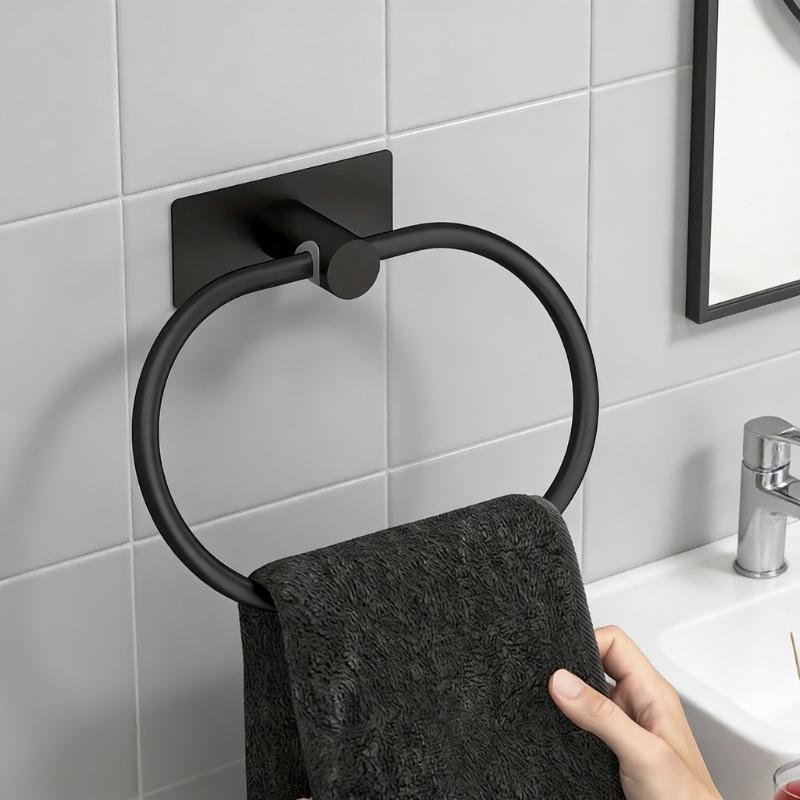 Handtuchhalter aus Edelstahl, selbstklebend, für Badezimmer, Handtücher, schwarz, Waschhandtuchhalter, Ring, Schiene, Bar, Aufbewahrungszubehör für die Küche