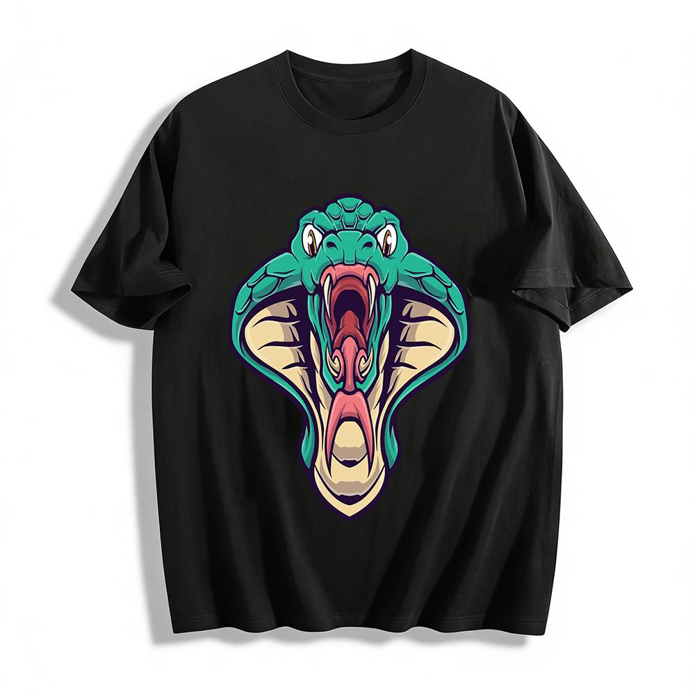 Wilder grüner Schlangenbrüll-Print Trendiger Streetstyle Lässiges T-Shirt Reines Baumwoll-T-Shirt