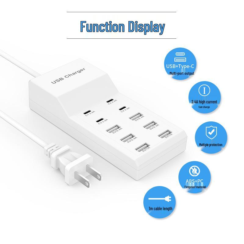 10-Port USB-C Fast Charger Power Strip, 5V2A, Safe Socket for Apple, Huawei, Xiaomi