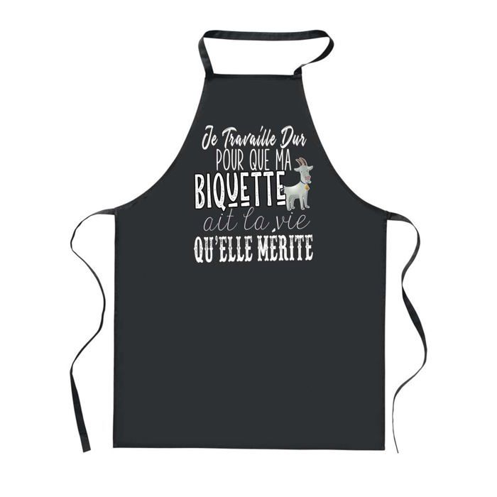 Tablier de cuisine - PLANETEE - Biquette Travailler Dur - Noir - Coton épais 90x60 cm - Impression bretonne