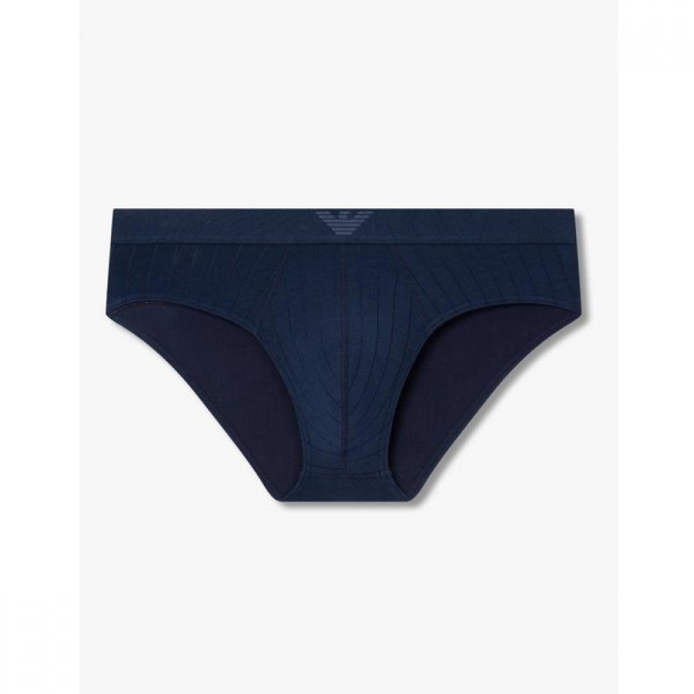 The EMPORIO ARMANI Men's Banding Stripe Rayon Brief is crafted from rayon material that provides excellent elasticity. The tonal banding design creates a sleek appearance, complemented by the center eagle logo and stripe panel details. This item combines comfort and style.