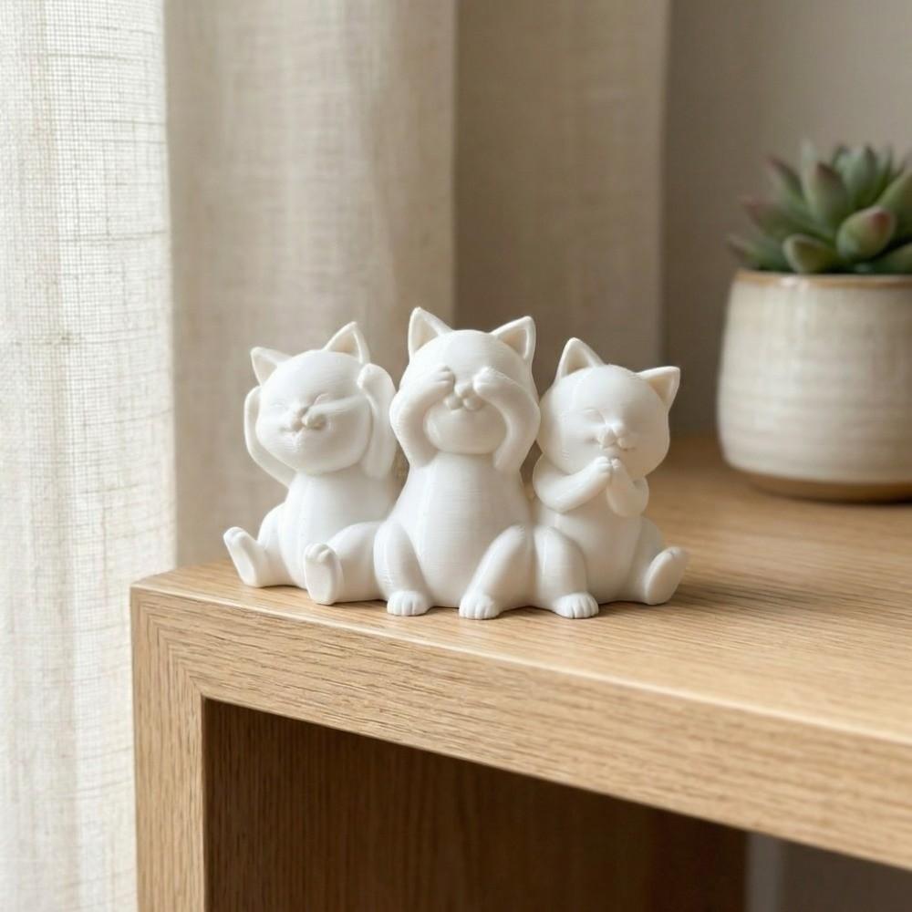 3D Printed Desktop Cat Decorations Creative Cat Ornament Simple Three Cat Statues Gift