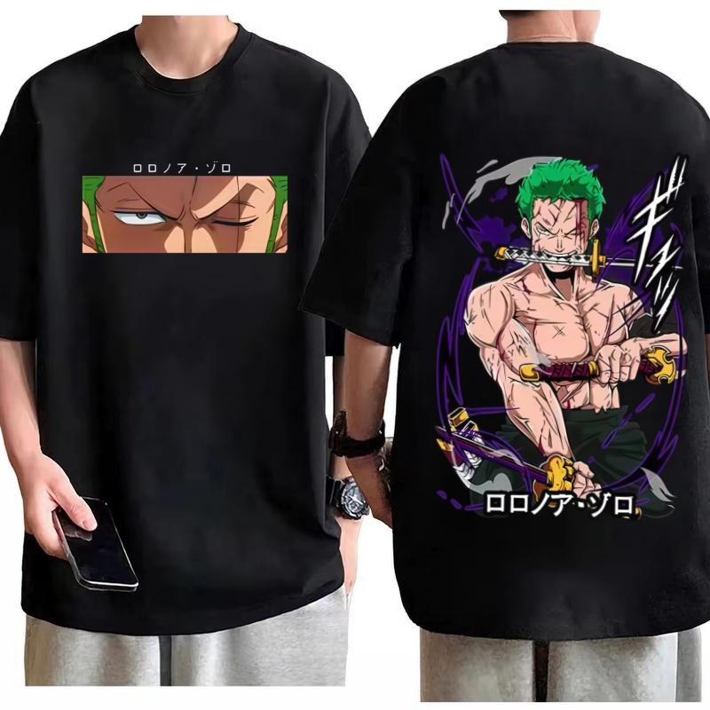 Roronoa Zoro Retro Triple Sword TShirt Men Oversized Cotton Anime Graphic Tee Casual Streetwear Breathable Loose Crew Neck Top