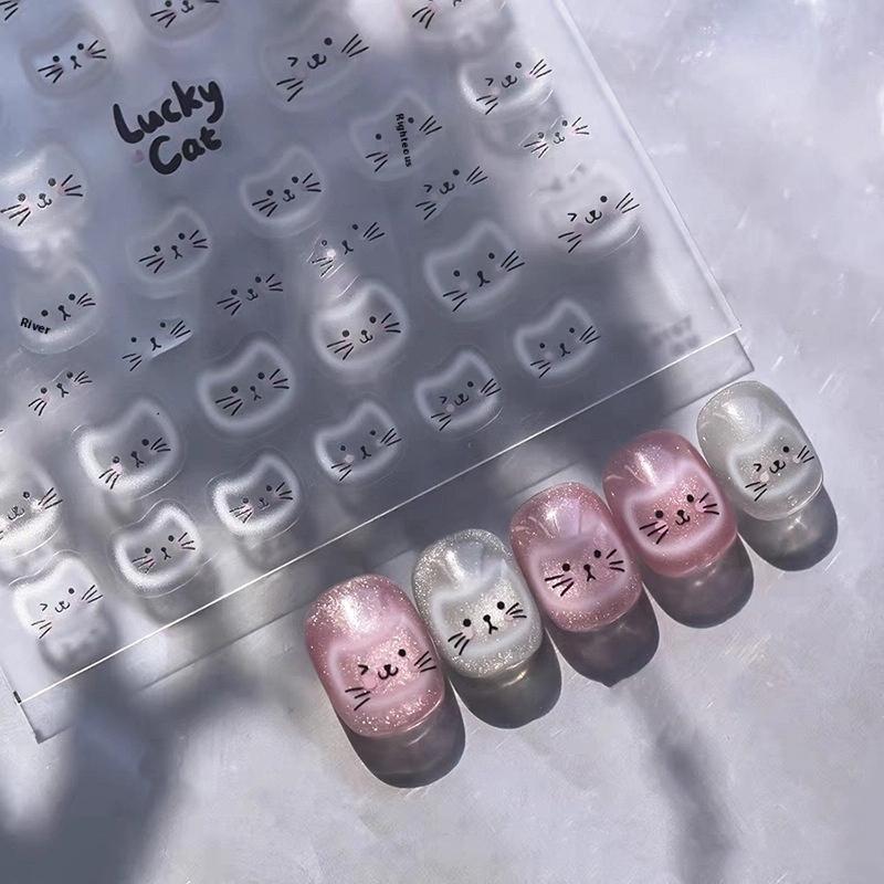 1/5Pcs White Halo Dyeing Cat Face Stickers DIY Nail Art Decoration Embossed Relief Nail Art Decals Accessories