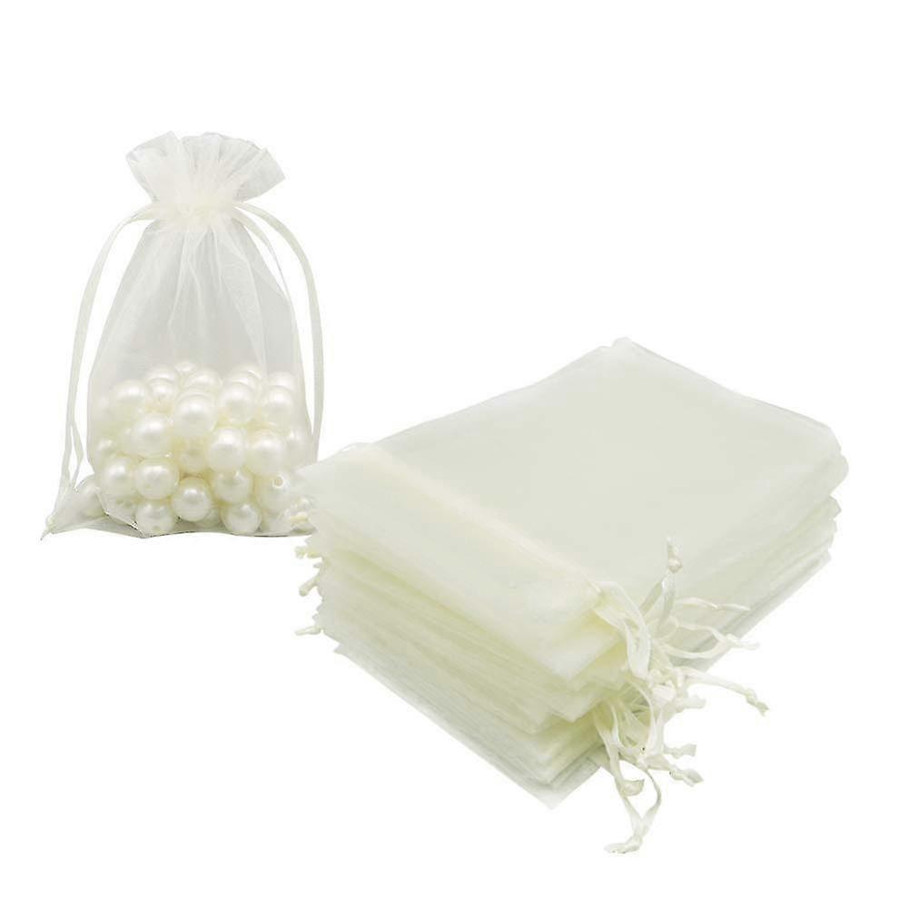100 Stück Organzabeutel 10x15 cm, Beige Netz-Schmuckbeutel Süßigkeiten-Kordelzug Geschenktaschen Kleines Säckchen für Hochzeitsmitgebsel