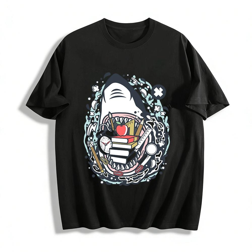 Shark Schulmaterial Druck Lässiges Grafik-T-Shirt Reines Baumwoll-T-Shirt