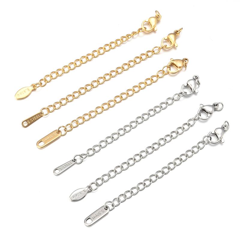 10pcs/lot Stainless Steel Extension Chains Link Jump Rings Lobster Clasps Connectors For Bracelets Necklace DIY Jewelry Making