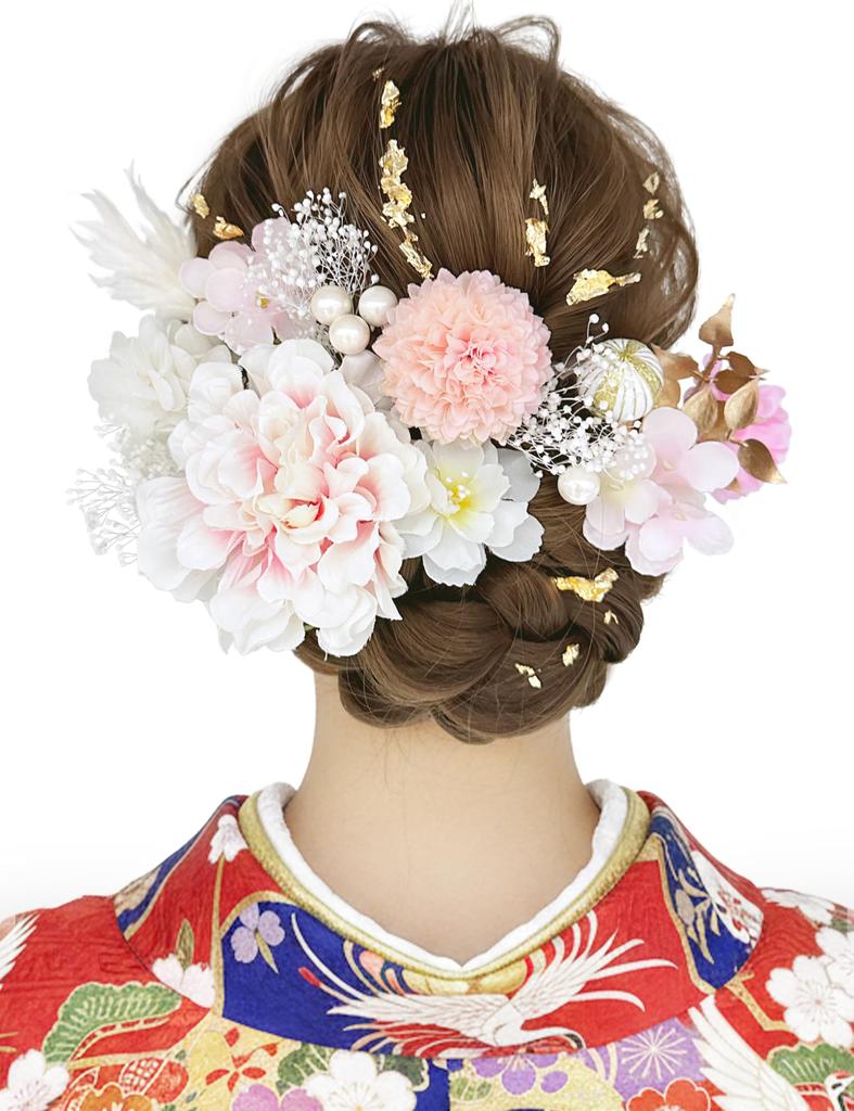 [JZOON] Popular Hair Ornament Set: Dried Flowers, Baby's Breath, Japanese Ball, Gold Leaf, Handmade Hair Accessory, Mizuhiki, Flower, Coming-of-Age