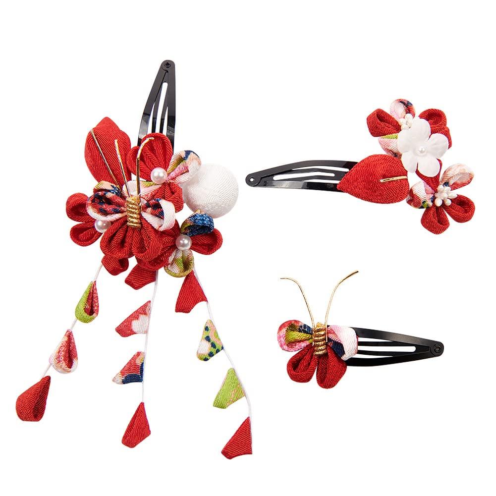 OTAKUMARKET Shichi-Go-San Hair Ornament Set for Girls (Ages 3-7) - 5 Types, 4 Colors (Type B (Red))
