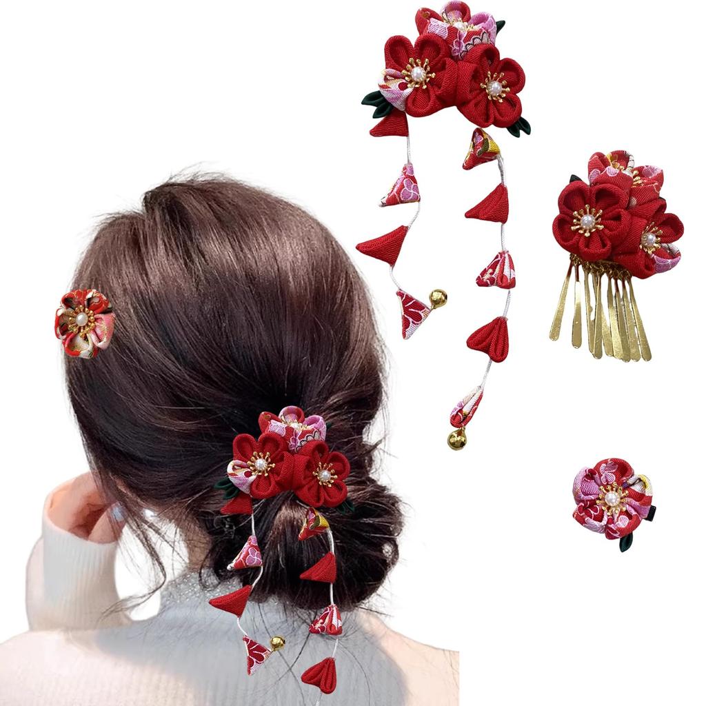 Samcos Hair Ornament Set (3 pieces) for Shichi-Go-San, Coming-of-Age Ceremony, Yukata, Summer Festivals, Fireworks Displays, Cherry Blossom Viewing,